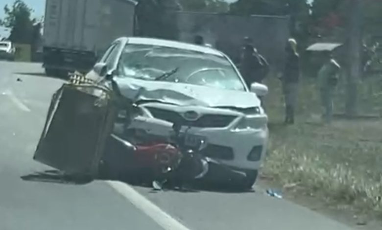 Um acidente envolvendo um carro e uma moto foi registrado na tarde desta segunda-feira, 30 de dezembro, na BR-101, nas proximidades do Posto Sanca, no trecho que corta o município de Muritiba.