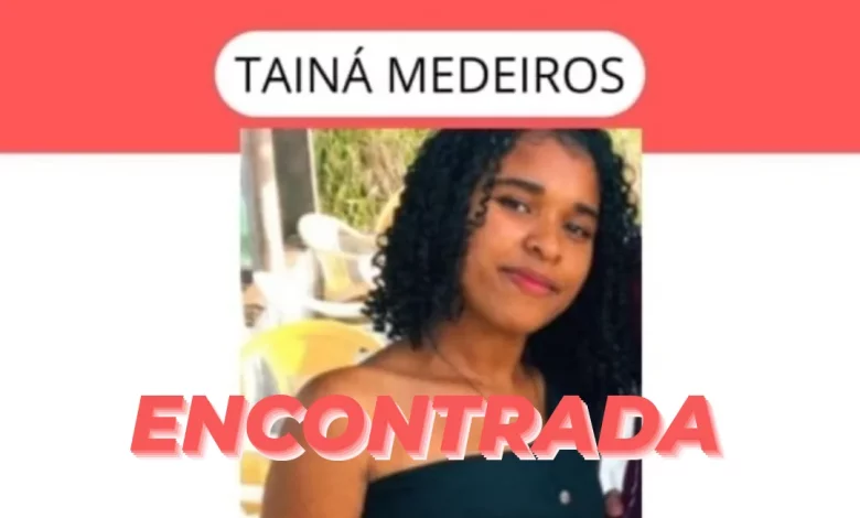 A jovem Tainá Medeiros, de 14 anos, que estava desaparecida desde a última terça-feira (07), na cidade de Governador Mangabeira, foi encontrada no início da tarde desta quinta-feira (09) em Cruz das Almas.