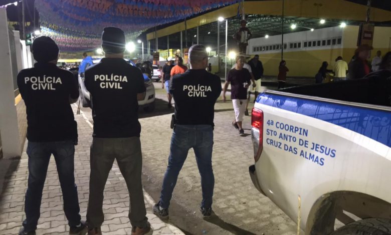 Um dos autores de uma chacina que vitimou cinco pessoas em abril deste ano, em Cruz das Almas, teve o mandado de prisão cumprido na madrugada deste domingo (26), dentro do circuito do São João, enquanto curtia festa. Após ser identificado por policiais da Delegacia Territorial (DT), o criminoso foi conduzido.