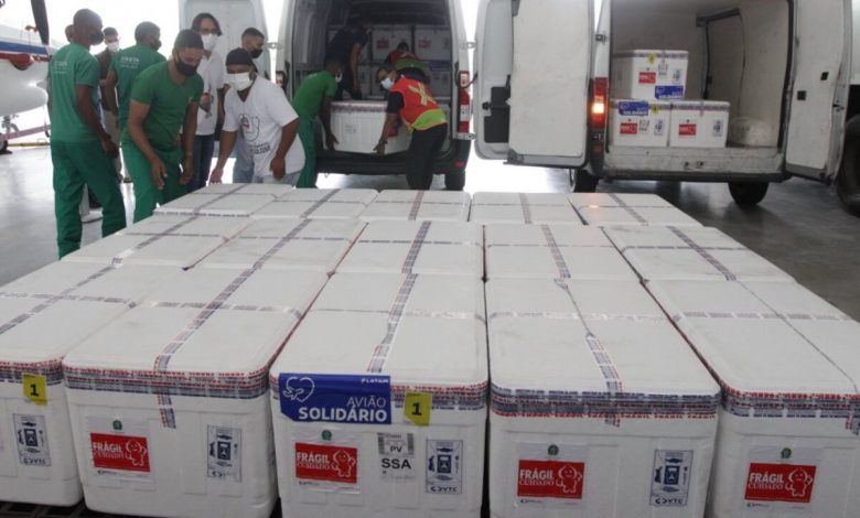 A Bahia receberá novas remessas de vacinas contra a Covid-19 entre esta sexta-feira (24) e sábado (25). A primeira carga, com 65.750 doses de vacinas da AstraZeneca, chega por volta de 17h05 no aeroporto de Salvador, nesta sexta.
