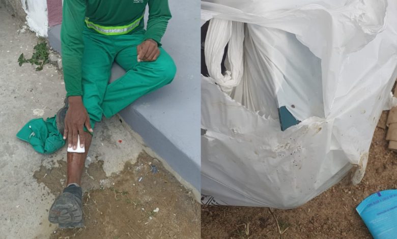 Um servidor público que trabalha fazendo a coleta de lixo se cortou na manhã deste sábado (17/12), com um pedaço de vidro, mal acondicionado, durante o recolhimento de resíduos no bairro Ana Lucia, em Cruz das Almas.