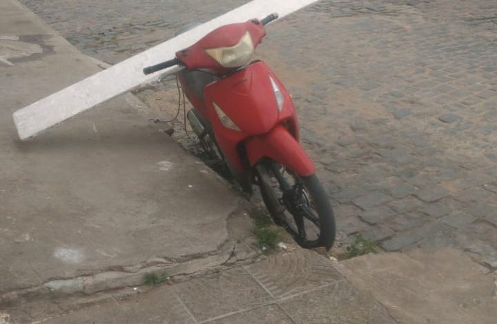 Biz 125 com pneus furados é furtada em frente a residência no bairro Itapicuru, em Cruz das Almas