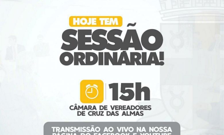Hoje, 28, logo mais às 15h, acontece a 26ª Sessão Ordinária da Câmara de Vereadores de Cruz das Almas. A sessão será transmitida na nossa página do Facebook (@camaramunicipalcruz), no Instagram (@camaramunicipalcruz) e no canal do YouTube (Câmara Municipal Cruz).