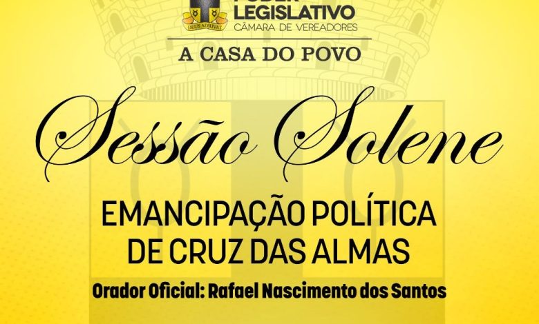 A Câmara de Vereadores de Cruz das Almas vai realizar no próximo sábado, 29, às 09h30, a Sessão Solene em comemoração aos 126 anos da Emancipação Política do município. Na oportunidade, 17 pessoas serão homenageadas com a Medalha 29 de Julho.