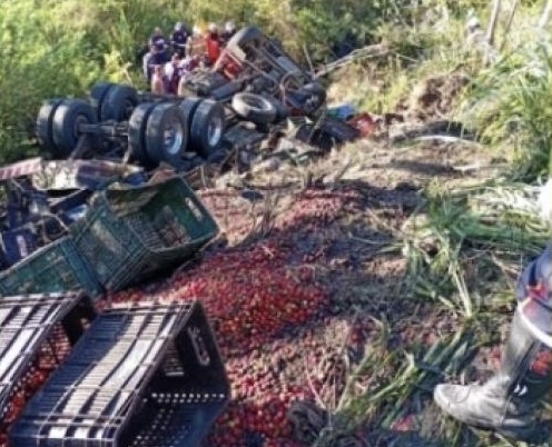 Um acidente foi registrado na manhã desta sexta-feira (6) na BR-101, nas proximidades do Comércio de Jaguaripe, no município de Conceição do Almeida. Um caminhão carregado de acerola saiu da pista e despencou em uma ribanceira após o motorista tentar evitar uma colisão com um carro de pequeno porte.