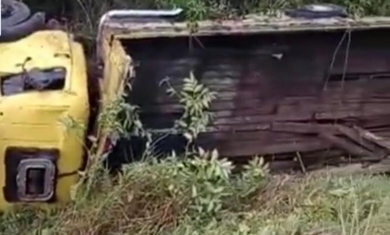 Caminhão tomba na BA-001, próximo ao Entroncamento de São Roque do Paraguaçu