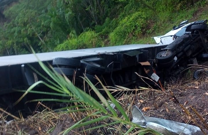 Na manhã deste sábado, 6 de janeiro, uma carreta tombou na BR-101, no trecho do município de Sapeaçu.
