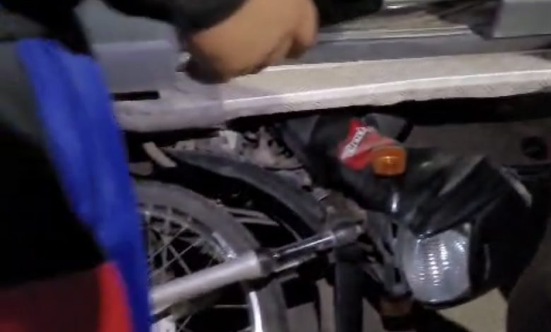 Uma das motocicletas ficou presa embaixo do veículo. Um vídeo que circula nas redes sociais mostra populares tentando retirar a moto.