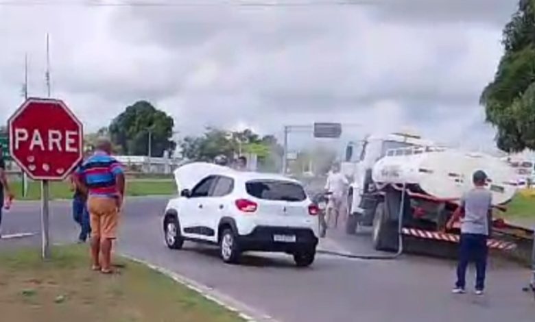 Vídeo: Carro tem princípio de incêndio na entrada de Cruz das Almas
