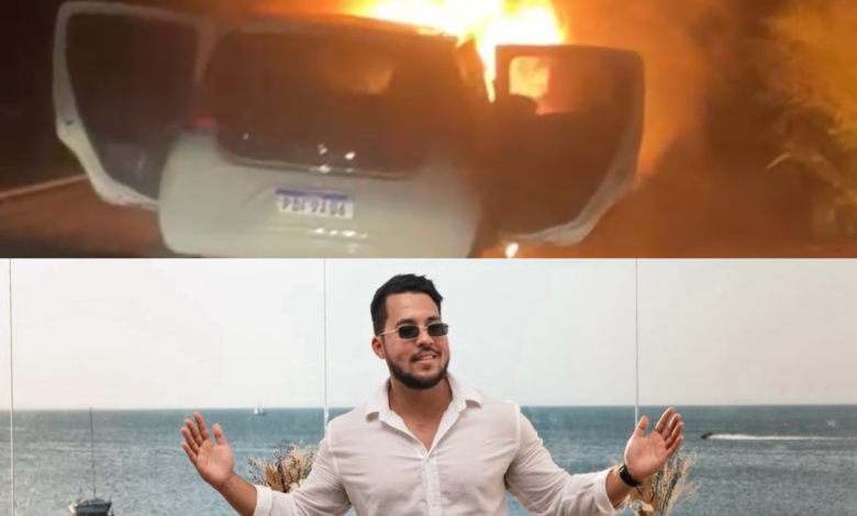 Carro utilizado por DJ Ozaki é destruído pelo fogo na BR-101; ele e equipe passam bem