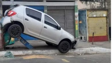 Motorista dá ré para tentar evitar assalto e carro bate em poste em Pernambués
