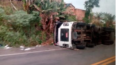 Sapeaçu: Caminhão que transportava diversas frutas tombou no início da manhã desta sexta-feira (20)