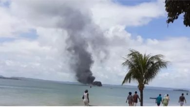 Lancha pega fogo e afunda na Ilha de Itaparica, na Bahia