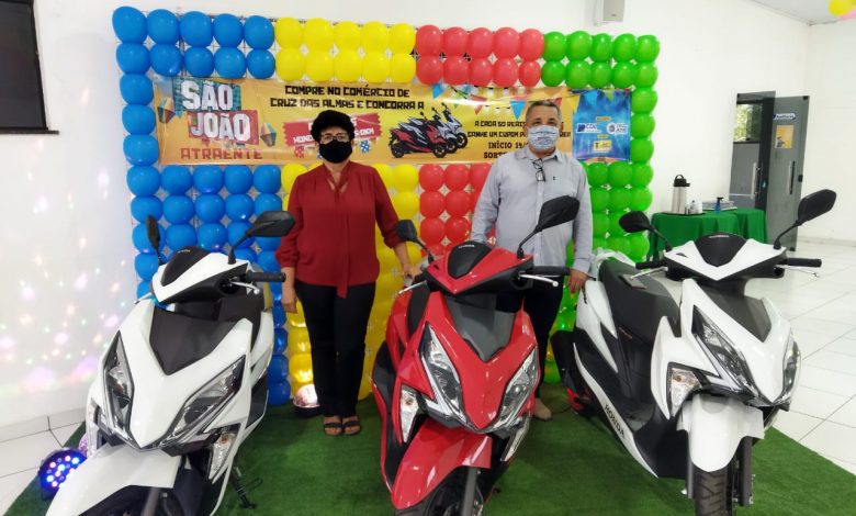 A Câmara de Dirigentes Lojistas de Cruz das Almas realizou na tarde deste sábado, 07, o sorteio da Campanha São João Atraente. Pessoas de toda região do Recôncavo baiano que compraram no comércio cruzalmense concorreram aos prêmios: três motos Honda Elite 125, no valor de R$ 11.500,00 cada. Devido ao número de lojistas que participaram da promoção e clientes, a campanha foi considerada um sucesso!