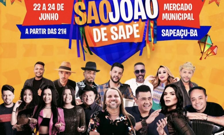 O prefeito de Sapeaçu, Ramon de Sena, divulgou na noite desta sexta-feira, 30 de maio, as atrações do São João 2025. A festa acontecerá de 22 a 24 de junho, no Mercado Municipal.