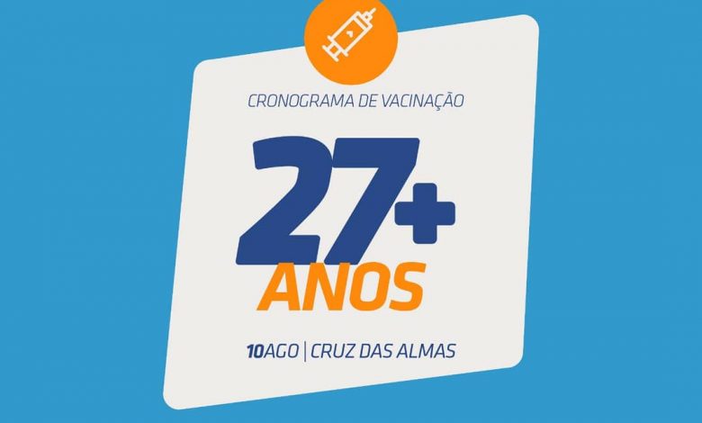 Cruz das Almas abre vacinação contra Covid-19 para quem tem 27 anos ou mais nesta terça-feira (10)