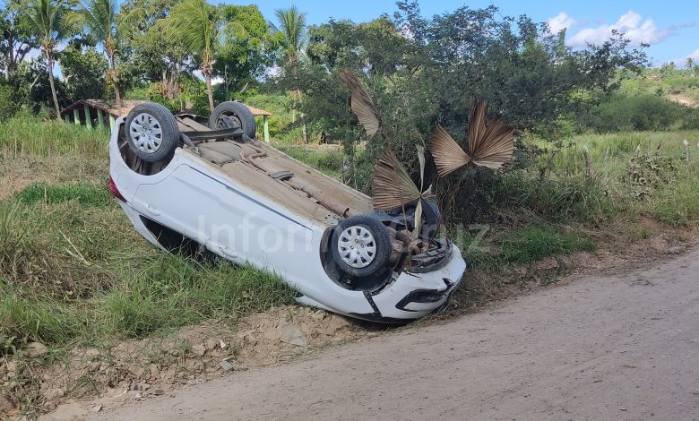 Na tarde desta quarta-feira, 10 de janeiro, um carro modelo Ford Ka capotou na Baixa da Embira, zona rural de Cruz das Almas.