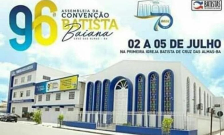 Será realizado nos dia 02, 03, 04 e 05 de Julho, a 96º Convenção Batista Baiana que este ano escolheu a cidade de Cruz das Almas para ser realizada.