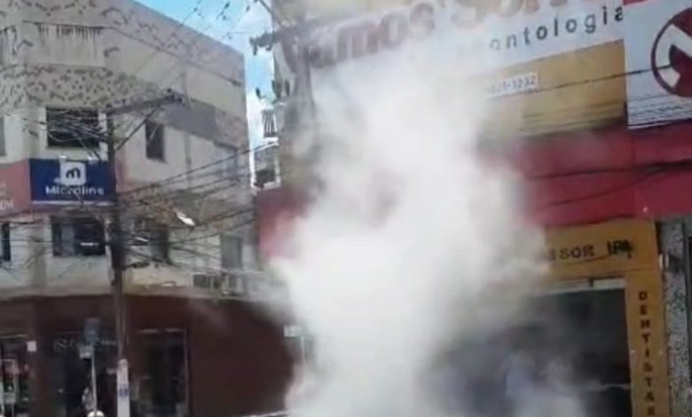 Vídeo: Curto circuito em poste de iluminação no centro de Cruz das Almas chama atenção
