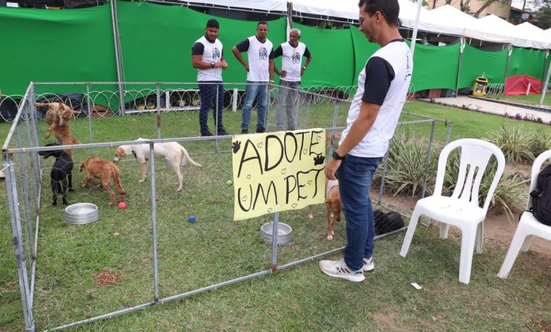 A equipe do Centro de Acolhimento e Bem-Estar Animal montou um espaço dentro da ExpoCruz, na Praça Senador Temístocles, para incentivar a adoção de cães de rua que foram resgatados pelo Samu Pet.