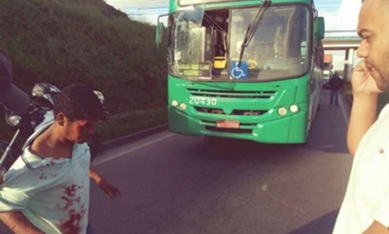 Pelas imagens enviadas para a redação do #AgoraNaBahia por um leitor, o passageiro sofreu ferimentos mas ficou consciente depois de cair no asfalto.