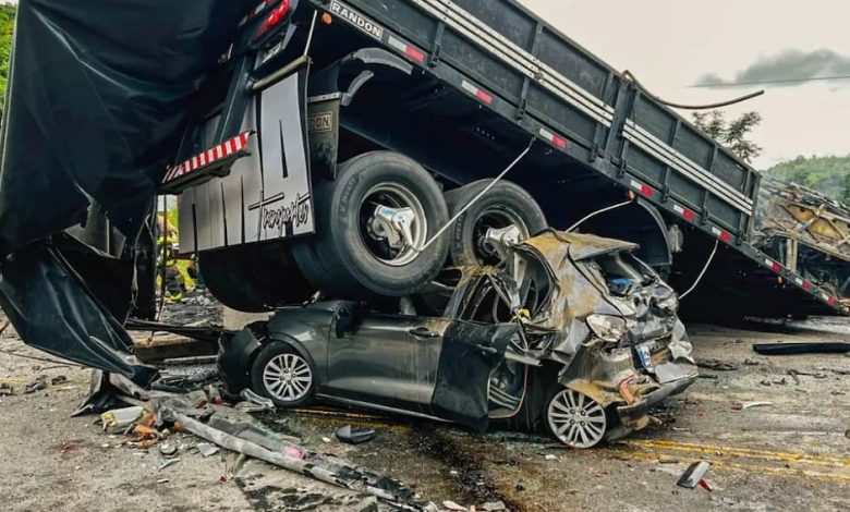 De acordo com Polícia Rodoviária Federal (PRF), uma pedra de granito, transportada pela carreta, se soltou e atingiu o ônibus. Um carro que seguia atrás da carreta também se envolveu no acidente ao bater na carreta.
