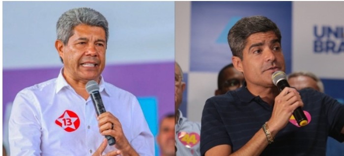 A disputa pelo governo do estado na Bahia terá segundo turno. Com 48,91% dos votos válidos, Jerônimo Rodrigues (PT) liderou a disputa no estado. Já ACM Neto (União) teve 41,15% dos votos válidos.