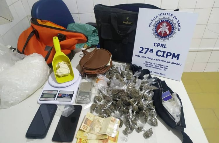 Policia Militar apreende drogas e conduz uma suspeita para delegacia em Muritiba.