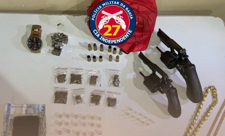 Após o cessar dos tiros, os homens foram encontrados caídos no chão, ainda com vida. Durante a busca pessoal, um dos indivíduos portava um revólver da marca TAURUS, calibre 38, com três estojos e três munições intactas. Já com o segundo suspeito, foi encontrada outra arma, um revólver da marca ROSSI, calibre 38, também com três estojos e duas munições intactas. Além disso, ele portava uma bolsa tipo pochete vermelha, contendo os seguintes itens: