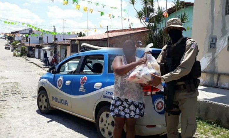 Nesta ação, os policiais militares entregaram os donativos a moradores de Cruz das Almas e Muritiba.