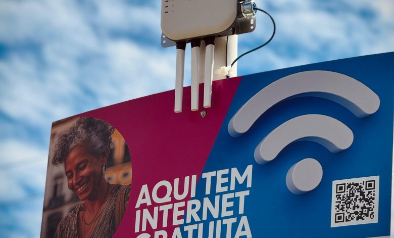 Para se conectar, o processo é simples, basta escanear o QR Code disponível na placa instalada, preencher as informações e acessar a rede gratuita.