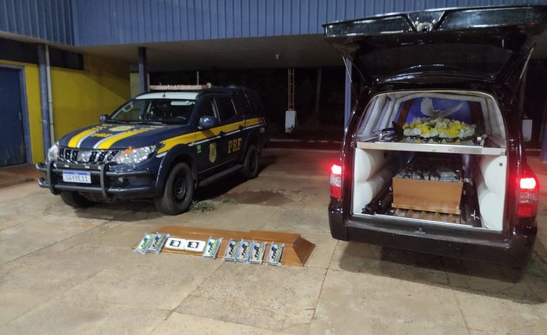 Em uma ocorrência inusitada, a Polícia Rodoviária Federal (PRF) apreendeu, na noite desta quinta-feira (29), em Terenos (MS), 162 Kg de cocaína que estavam escondidos dentro de um caixão funerário.