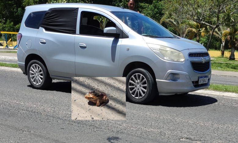 “Estava vindo com minha esposa e meu filho recém-nascido da cidade de Cachoeira para Cruz das Almas. Ao chegar nesse trecho da avenida, senti o carro engasgar, perder a força e parar. Ao abrir o capô, um sapo saiu de baixo do veículo com as costas machucada”, relatou o motorista.