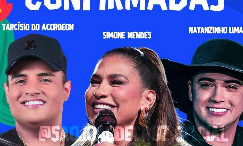 Simone Mendes, Natanzinho Lima e Tarcísio do Acordeon são confirmadas no São João de Cruz 2025