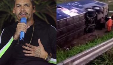 Ônibus com Devinho Novaes, banda e avó do cantor tomba no interior de Alagoas