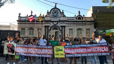 Cruz das Almas: profissionais da educação realizam manifestação pelo pagamento do abono salarial com as sobras do Fundeb