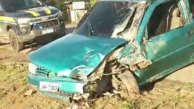 Homem fica ferido em acidente entre carro e moto no centro de Cruz das Almas