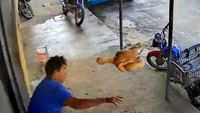 VÍDEO: Homem arremessa frango assado contra ladrão
