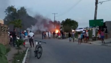Moradores protestam contra blitz da PRF na BR-101, em Cruz das Almas