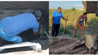 Vaca é resgatada após cair em fossa de mais de 3 metros na Pumba, em Cruz das Almas