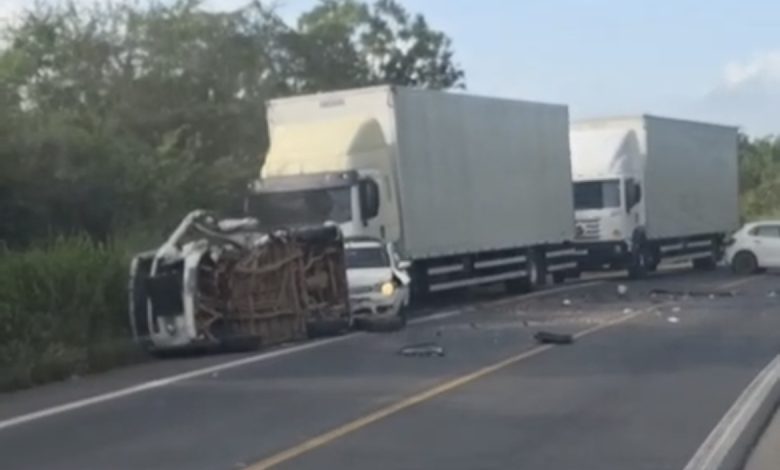 Um grave acidente foi registrado na manhã desta segunda-feira (8) na BR-101, no trecho que liga Dom Macedo Costa a Santo Antônio de Jesus. A colisão frontal envolveu ao menos dois veículos, deixando um deles com a parte dianteira totalmente destruída.
