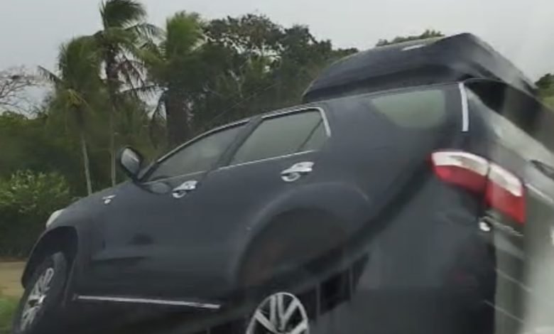 Vídeo: Carro sai da pista e por pouco não despenca em ribanceira na BR-101, em Cruz das Almas