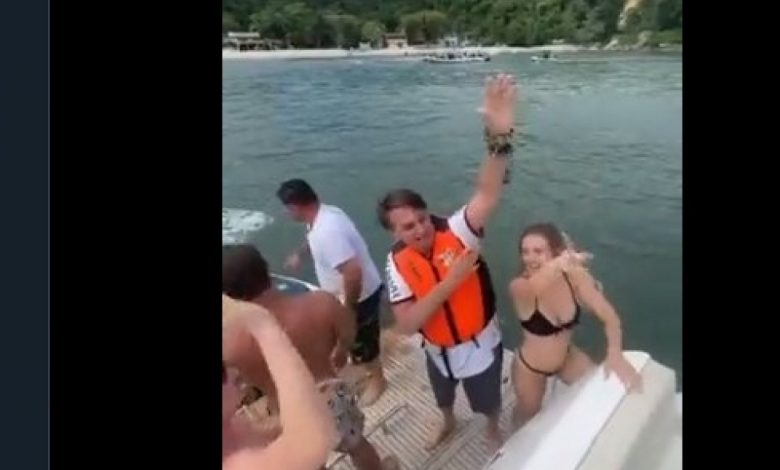 Vídeo: Em iate com apoiadores, Bolsonaro dança funk com letra que ataca adversários políticos