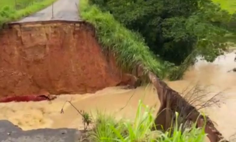 A queda de um pontilhão neste sábado, 17 de fevereiro, causou uma cratera na BA-420, interrompendo o tráfego na rodovia que liga Maragogipe ao distrito de São Roque do Paraguaçu e à BA-001. O incidente ocorreu após as fortes chuvas que atingiram a região.